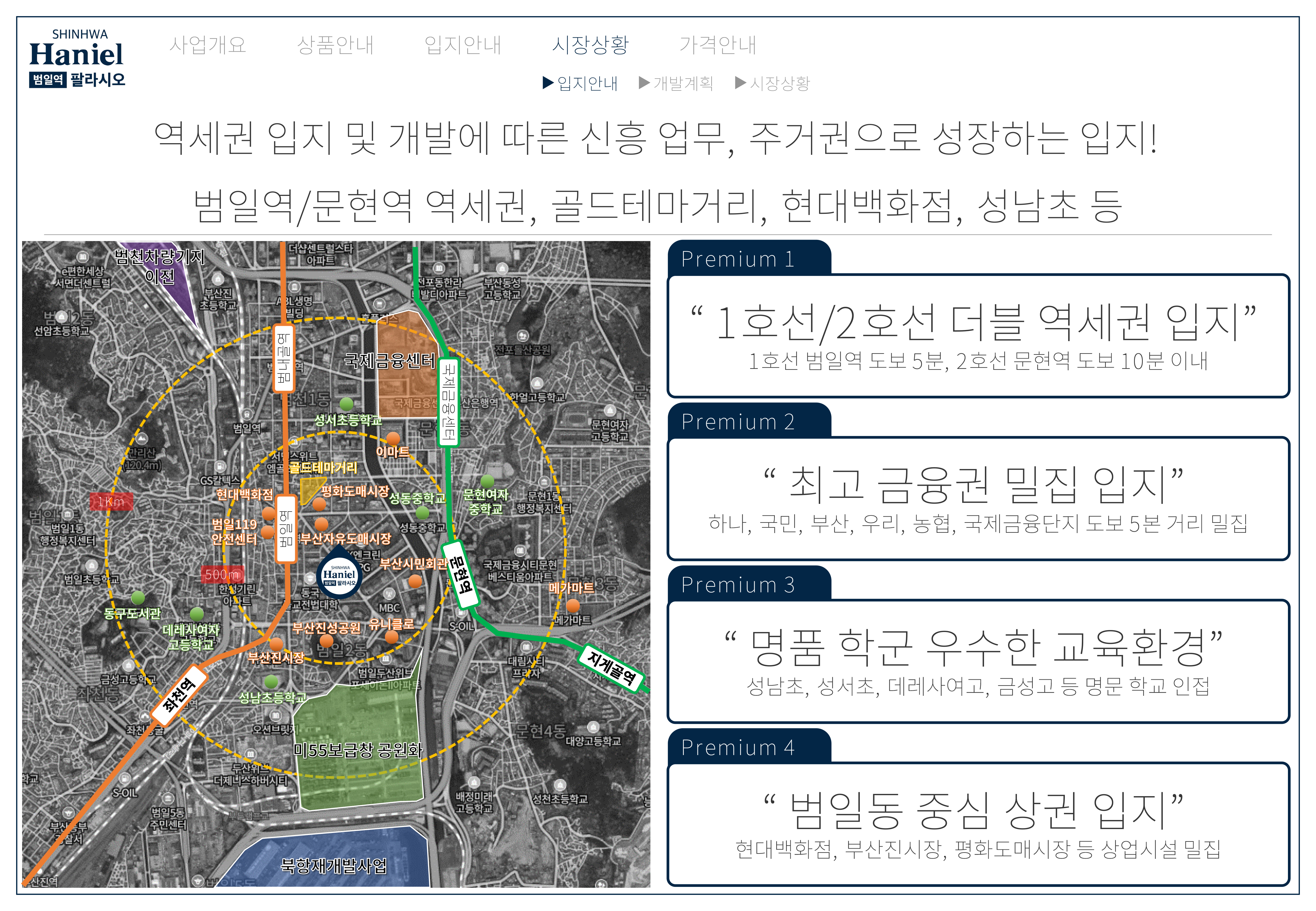 - 출퇴근 시간이 곧 삶의 질입니다. 부산의 주요 업무 지구와 상업 지구로의 이동이 획기적으로 단축되어, 귀한 시간을 아끼고 여유로운 일상을 누릴 수 있습니다. 범일역 신화하니엘 팔라시오는 바쁜 현대인들에게 가장 큰 이득인 '시간'을 선물합니다.