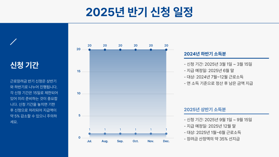 2025년에도 반기 신청 제도는 계속 운영될 예정이며, 신청 시기와 지급 방식은 다음과 같아요. 2024년 하반기 소득분은 2025년 3월 1일부터 3월 15일까지 신청할 수 있고, 6월 말까지 지급될 예정이에요. 2025년 상반기 소득분은 9월 1일부터 9월 15일까지 신청하면 12월 말까지 지급받을 수 있답니다.